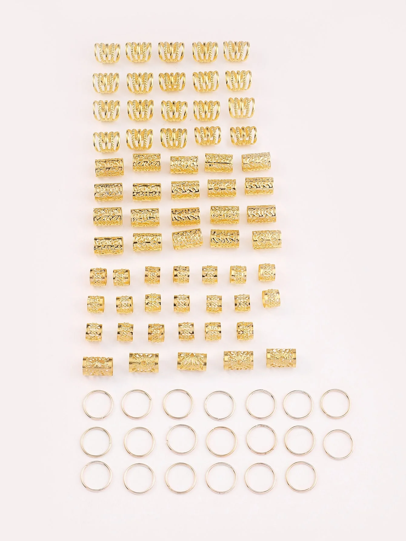 Transform your dreadlocks with this comprehensive 85-piece hair accessories set! This collection includes hollow metal beads, rings, and clips designed specifically for dreadlock styling and hair braiding.